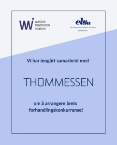 Vi har også gleden av å dele at årets forhandlingskonkurranse arrangeres i samarbeid med Advokatfirmaet Thommessen. Samarbeidet bidrar til et høyt faglig nivå og gir deltakerne en god anledning til å bli kjent med advokater i praksisfeltet, samt bygge nettverk i et profesjonelt og sosialt miljø.